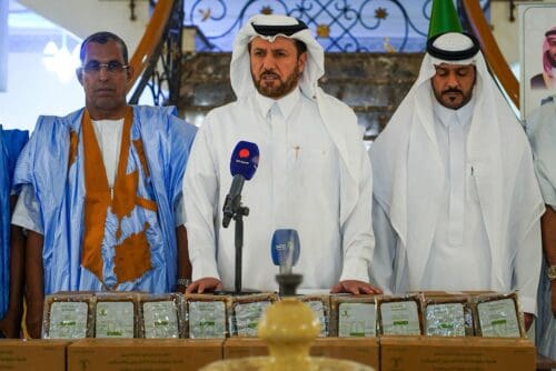 وأشرف على عملية التوزيع السفير السعودي في نواكشوط، عبد العزيز بن عبد الله الرقابي، وذلك في إطار برنامج خادم الحرمين الشريفين لتفطير الصائمين.