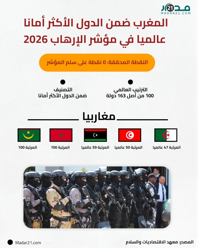 ظهرت المقالة المغرب ضمن الدول الأكثر أمانا عالميا في مؤشر الإرهاب 2026 أولاً على مدار21.