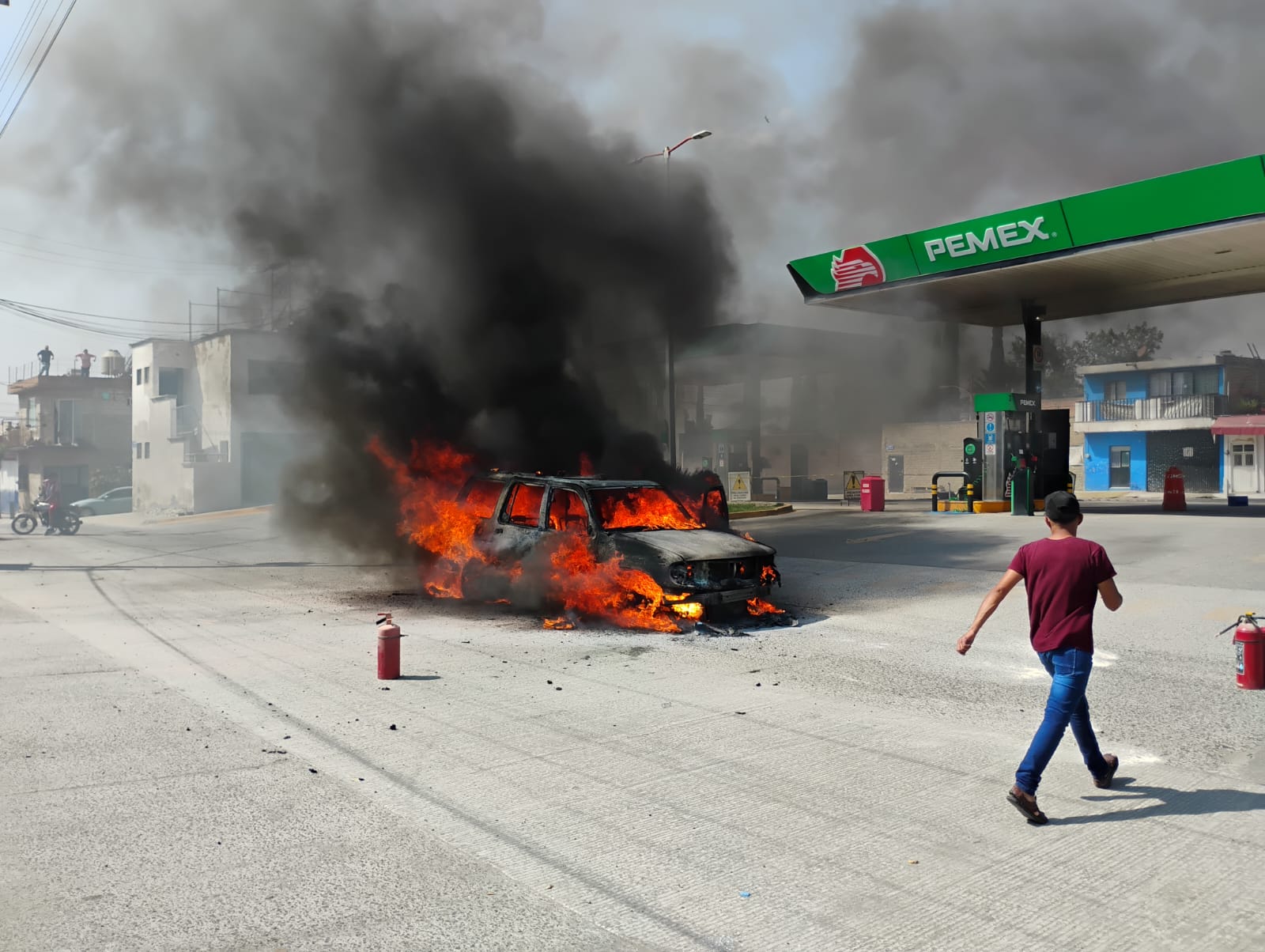 خارج أسوار المطار، طبقت العصابة استراتيجية “الأرض المحروقة”، حيث أُحرقت عشرات الحافلات والشاحنات، مما شل حركة التنقل بين غوادالاخارا وبويرتو فالارتا.