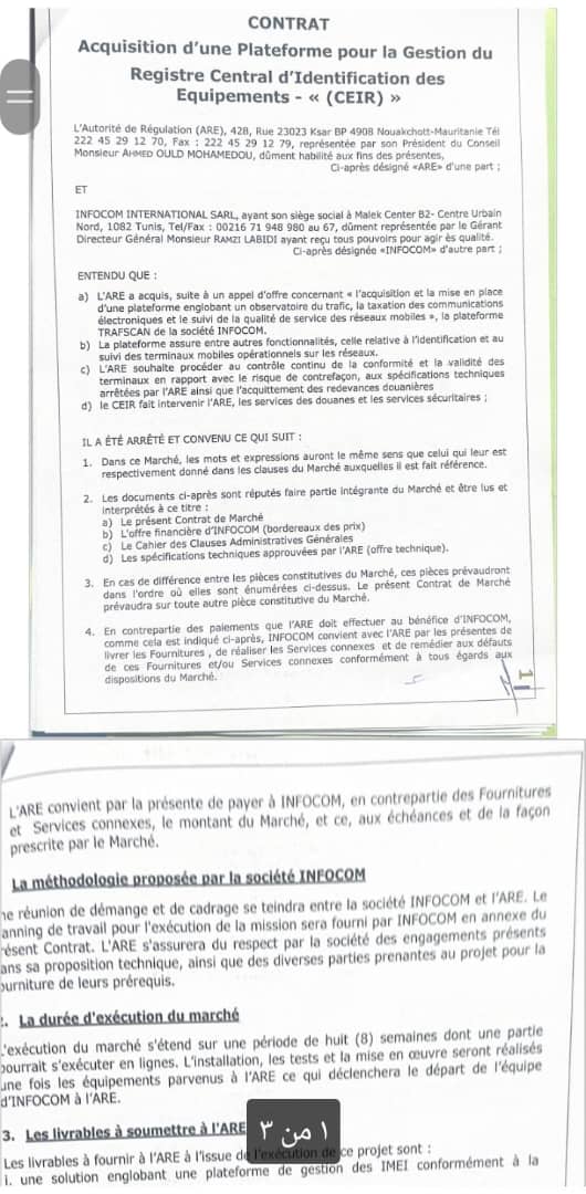 قال رئيس القطاع الفني في سلطة التنظيم، الشيخ التجاني أوداعه، إن العقد المبرم مع شركة INFOCOM International التونسية لتنفيذ منصة تتبع الهواتف المحمولة لم يكن الأقل من حيث قيمة العروض المقدمة، لكنه اعتبر الأنسب من ناحية تكاليف الصيانة والتشغيل لمدة خمس سنوات، ما رجح اختيار الشركة لتنفيذ المشروع.