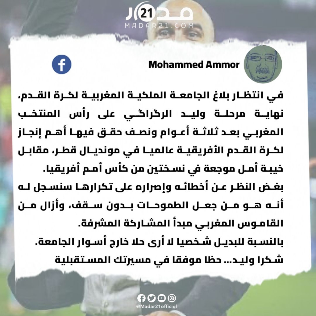 ظهرت المقالة عمور عن الركراكي: سنسجل أنه من جعل الطموحات بدون سقف أولاً على مدار21.