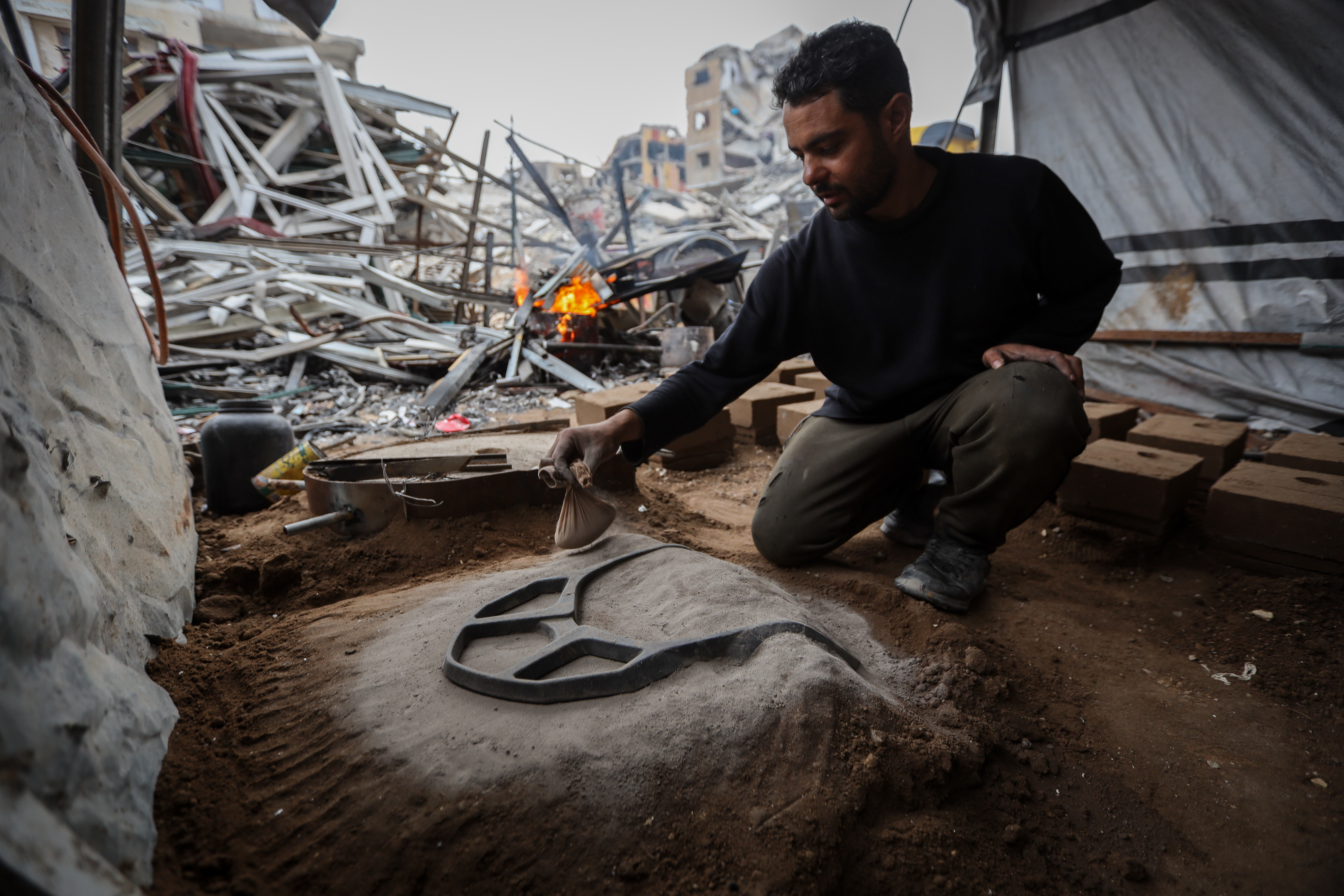 في خيمة صغيرة من النايلون وسط منطقة تل الهوا جنوبي مدينة غزة، افتتح المهندس باسل البطش ورشته المتواضعة لإعادة تدوير الألمنيوم وتصنيع قطع غيار للمركبات والآلات المهترئة، محاولا التغلب على الظروف الصعبة الناتجة عن حرب الإبادة الإسرائيلية والإغلاق المشدد للمعابر.